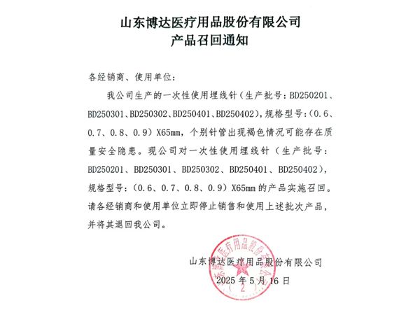 山東博達醫療用品股份有限公司是生產可吸收性外科縫線專業廠家,主要產品有可吸收縫合線 、內窺鏡圈套線、可吸收外科縫線、快吸收美容線、醫用羊腸線 膠原蛋白線以先進的生物技術提取了健康哺乳動物內臟的膠原蛋白為基材,采用先進的工藝加工而成,線體的主要成分為高純度膠原蛋白,并獲得了國家發明專利,頒布了YZB/國6301-2013《可吸收性外科縫線》產品標準,并通過了ISO9001:2015和ISO13485:2016質量管理體系認證。